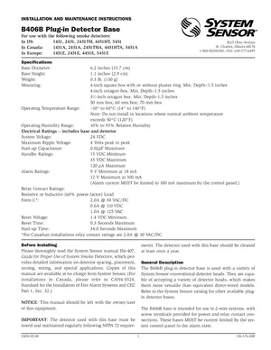 Installation Manual for the System Sensor B406B, published in 2001. Document No: I56-376-08R, Rev: 08R. 15 models including B406B, 1451, 2451 and 12 additional variants. Mounting instructions, wiring diagrams, and system power-up procedures.