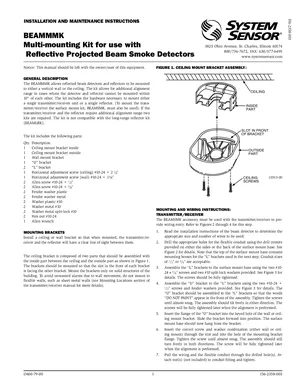 Installation Manual for the System Sensor BEAMMMK, published in 2010. Document No: I56-2358-003, Rev: 003. Models BEAMMMK, BEAMSMK and BEAMLRK. Physical installation guide, backbox dimensions, and cabling specifications.