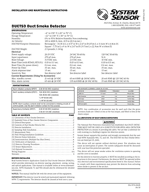 Installation Manual for the System Sensor DUCTSD, published in 2010. Document No: I56-3974-002R. Model DUCTSD. Mounting instructions, wiring diagrams, and system power-up procedures.