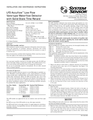 Installation Manual for the System Sensor LFD, published in 2000. Document No: I56-1620-000. 5 models including LFD20, LFD25-73MM, LFD25-76MM and 2 additional variants. Hardware installation, terminal connections, and environmental requirements.