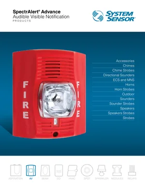 Brochure for the System Sensor SpectrAlert Advance, published in 2014. Document No: AVBR10408, Rev: 10/14. 182 models including SCR, SCW, SCRH and 179 additional variants. System capabilities, competitive advantages, and integration options.