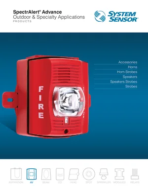 Datasheet for the System Sensor SpectrAlert Advance Outdoor Products, published in 2015. Document No: AVBR77801, Rev: 6/15. 53 models including SCRK, SCWK, SCRHK and 50 additional variants. Engineering specifications, wiring diagrams, and mounting dimensions.