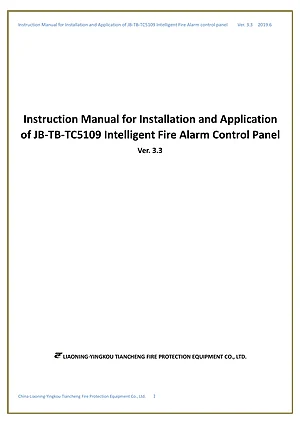 Installation, Operations, and Programming Manual for the Tiancheng JB-TB-TC5109 v3.3, published in 2019. Rev: 3.3. Model JB-TB-TC5109. Complete system installation, daily operation procedures, and detailed programming configurations.