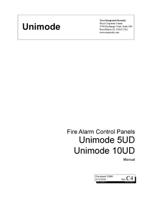 Installation, Operations, and Programming Manual for the Tyco Unimode 5UD and 10UD, published in 2018. Document No: 52880, Rev: C4. 17 models including Unimode 5UD, Unimode 10UD, CAC-5X and 14 additional variants. Hardware installation, alarm/fault management, and advanced system configuration.