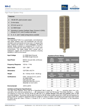 Datasheet for the Ultra Electronics MA-2. Document No: 90080A-SS-MA2, Rev: A. 16 models including MA-2, 90080A, 90224A and 13 additional variants. Detailed technical specifications, electrical ratings, and agency listings.