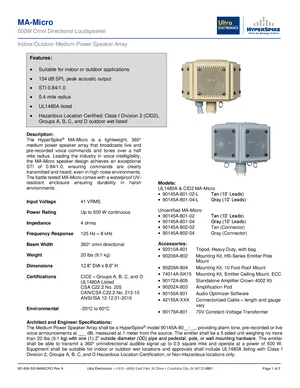 Datasheet for the Ultra Electronics MA-Micro. Document No: 90145A-SS-MAMICRO, Rev: A. 7 models including MA-Micro, 90145A-801-02-L, 90145A-801-04-L and 4 additional variants. Detailed technical specifications, electrical ratings, and agency listings.