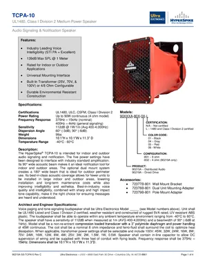 Datasheet for the Ultra Electronics TCPA-10. Document No: 90215A-SS-TCPA10, Rev: C. Models TCPA-10, 90215A and 90219A. Engineering specifications, wiring diagrams, and mounting dimensions.
