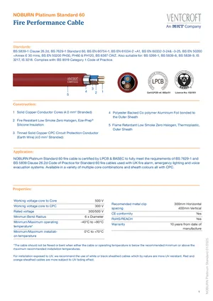 Datasheet for the Ventcroft NOBURN Platinum Standard 60, published in 2025. 64 models including VFP-215ERD, VFP-315ERD, VFP-415ERD and 61 additional variants. Detailed technical specifications, electrical ratings, and agency listings.