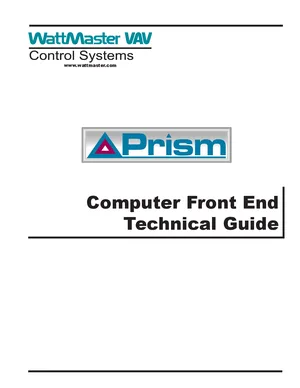 User Guide for the WattMaster Prism, published in 2004. Document No: WM-VAV-PRISM-CFE-01B, Rev: 01B. 8 models including Prism, CommLink II, WMVAV and 5 additional variants. End-user operating instructions, system navigation, and daily operation procedures.