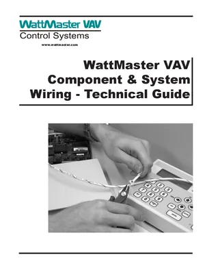 Installation and Technical Reference Manual for the WattMaster VAV, published in 2004. Document No: WM-VAVWIRE-TGD-01A, Rev: 01A. 23 models including WMVAV, VAVBOX, CommLink II and 20 additional variants. Hardware installation, alarm/fault management, and advanced system configuration.