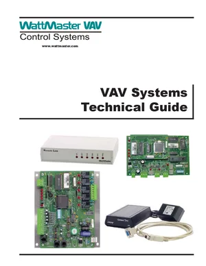 Technical Reference Manual for the WattMaster VAV Systems, published in 2004. Document No: WM-VAV-SYS-TGD-01A, Rev: 01A. 11 models including CommLink II, MiniLink PD, WMVAV and 8 additional variants. Comprehensive system reference, electrical characteristics, and interface details.