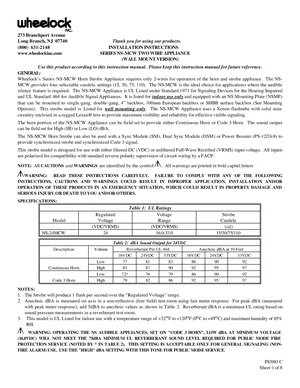 Installation Manual for the Wheelock Series NS-MCW, published in 2000. Document No: P83983, Rev: C. Models NS-MCW and NS-24MCW. Physical installation guide, backbox dimensions, and cabling specifications.
