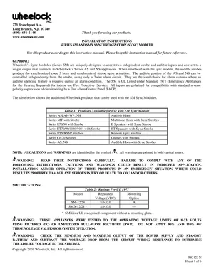 Installation Manual for the Wheelock SM and SMX, published in 2001. Document No: P83123, Rev: N. Models SM-12/24 and SMX-12/24. Hardware installation, terminal connections, and environmental requirements.